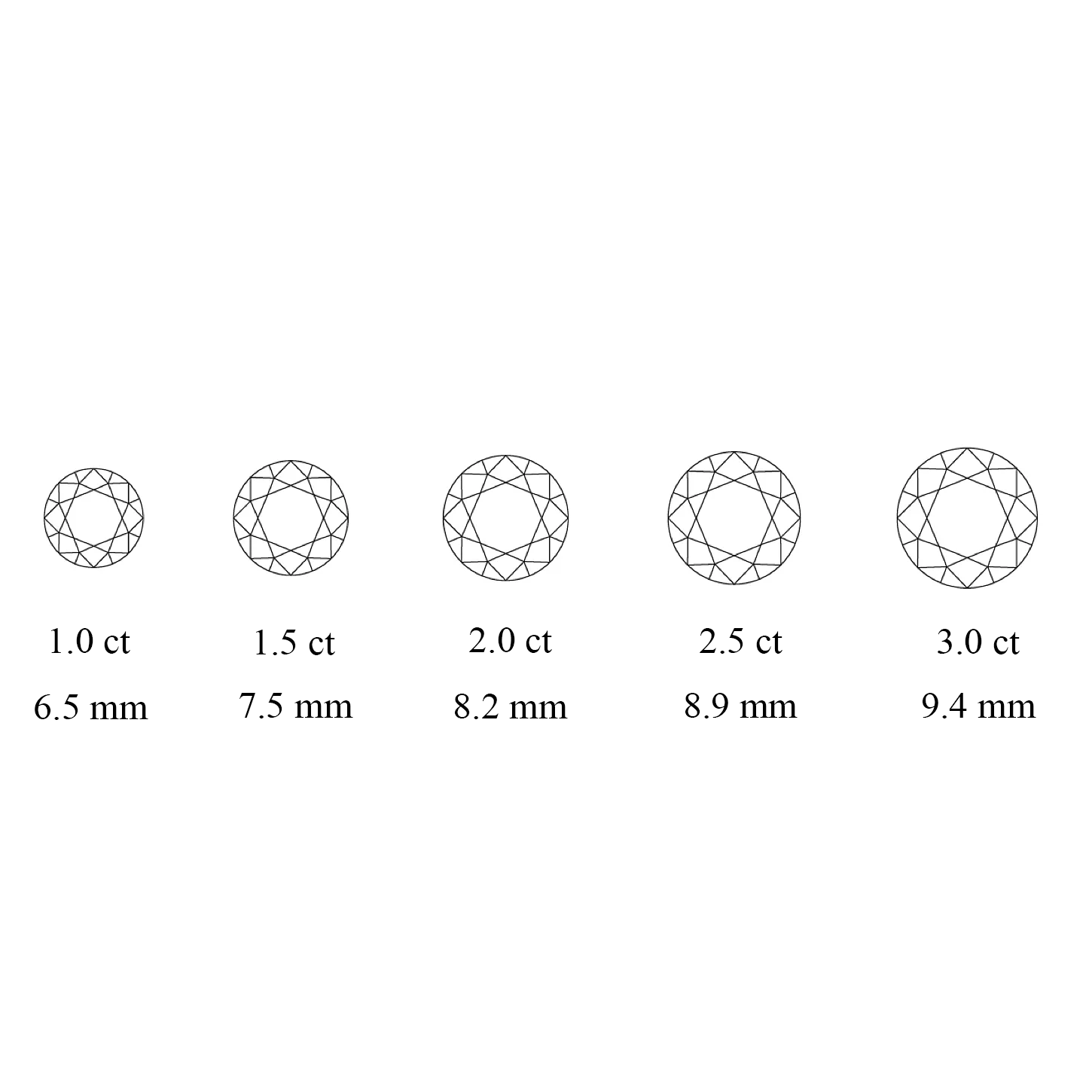 As carat weight increases, so does the diameter of the diamond. The carat weight increases faster than the diameter of the diamond since the diamond is growing in all 3 dimensions - length, width and height.