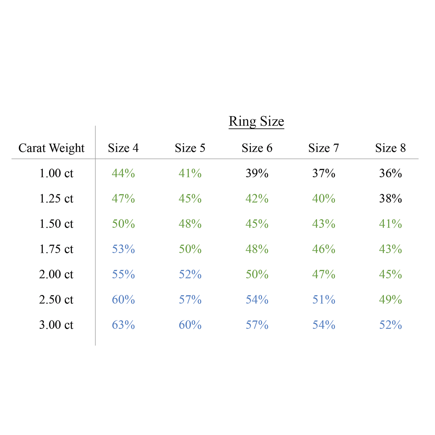2. The percentages in the table describe how much of your finger will be covered by the diamond.