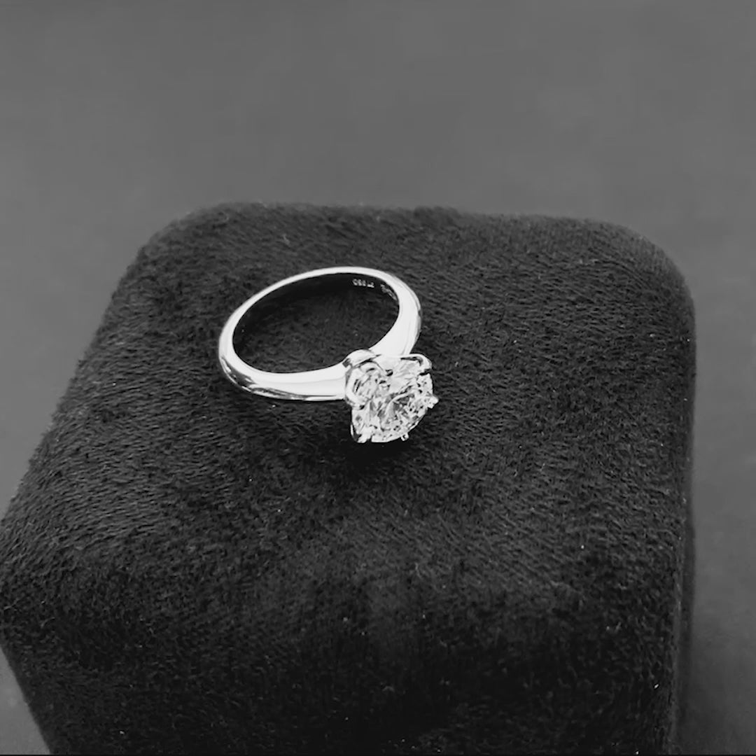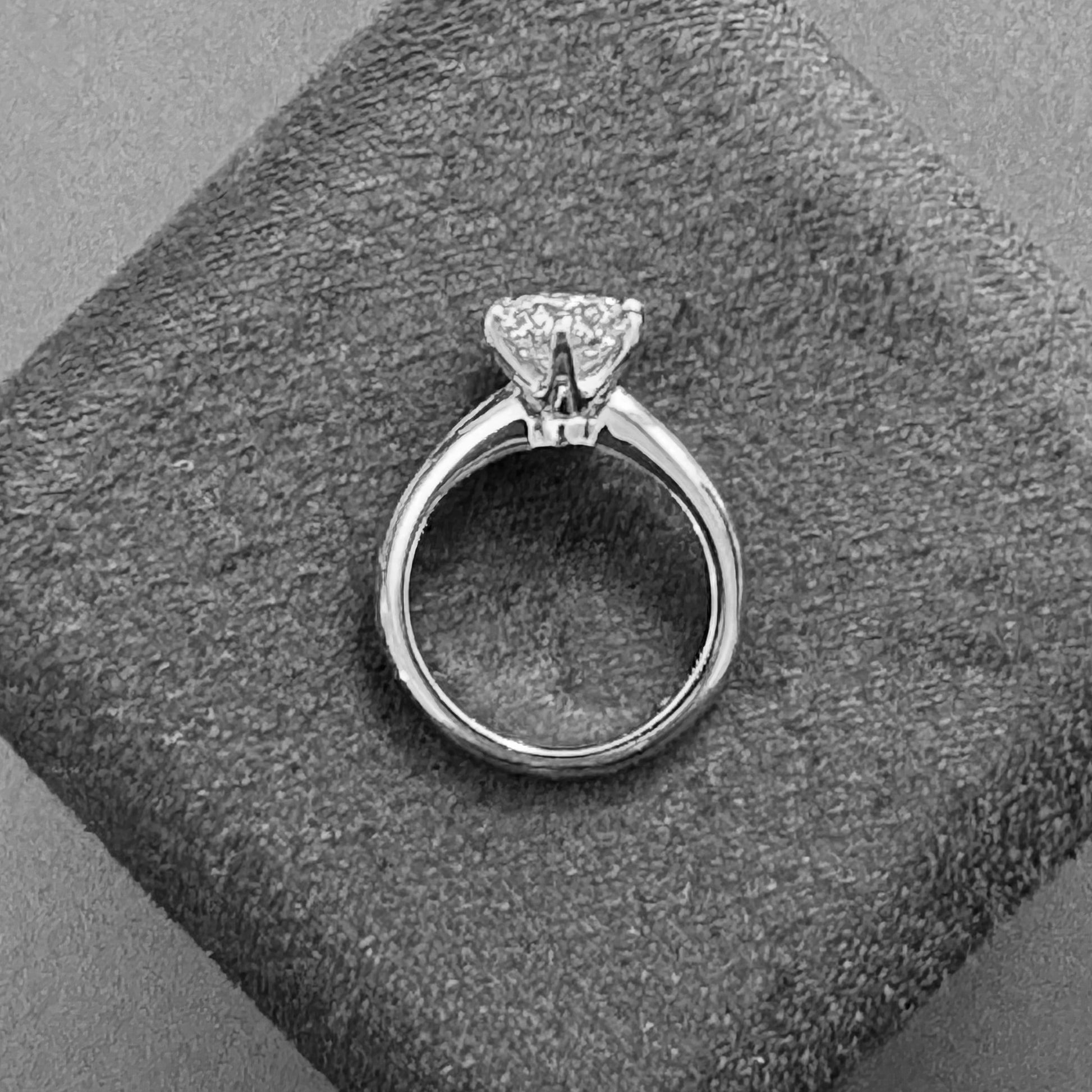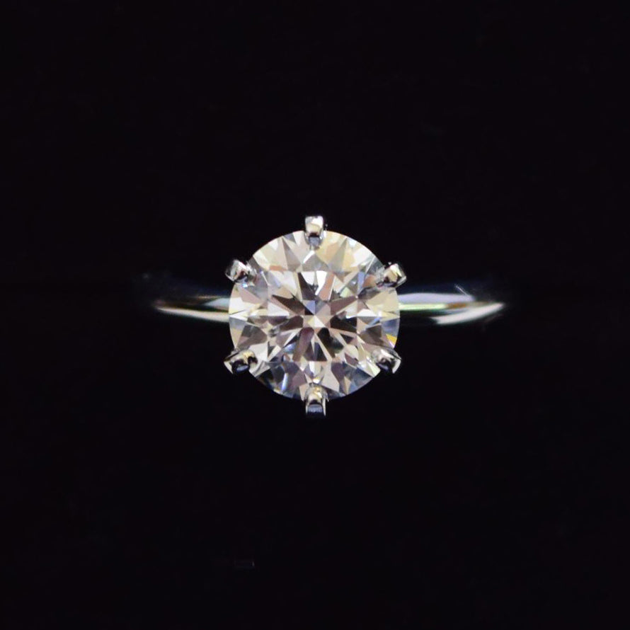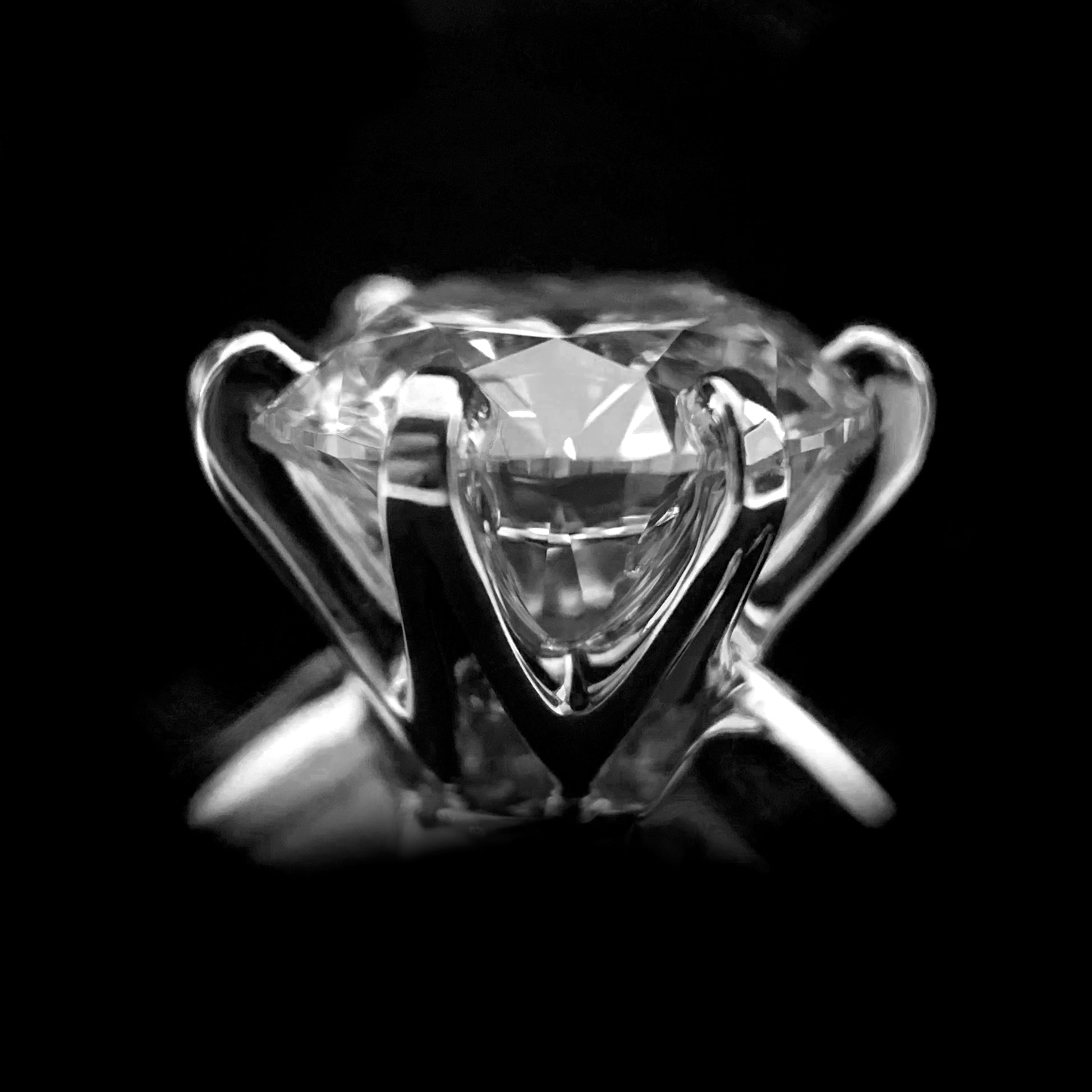 The iconic solitaire. This six prong setting holds the diamond above the band to let in light, allowing the diamond to be the center of attention.